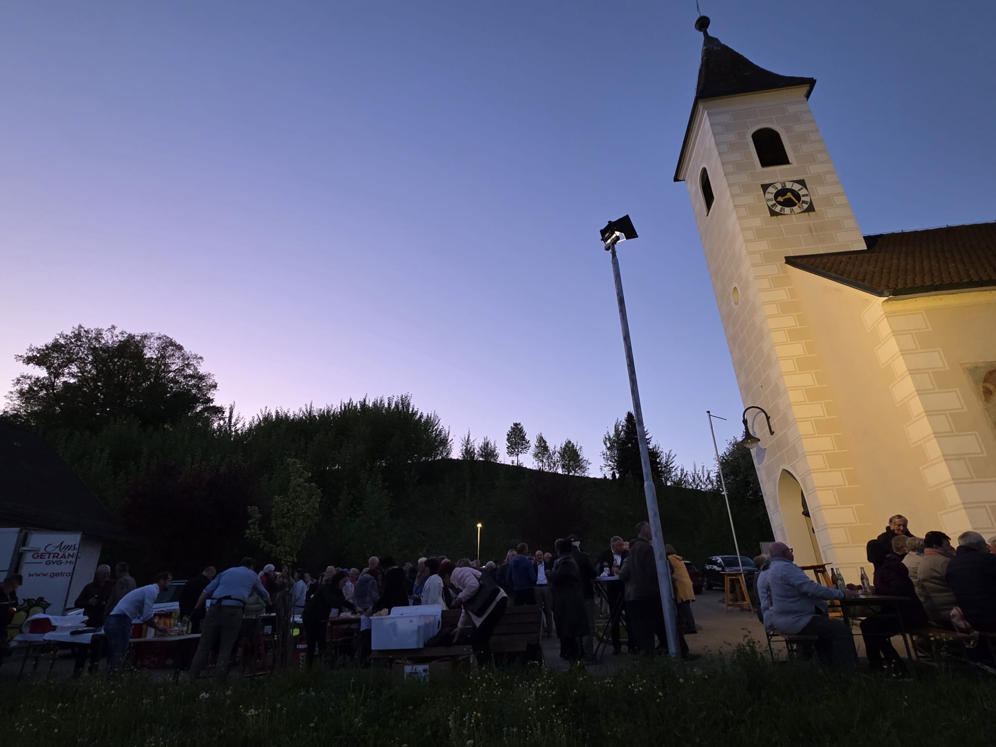 Rund 150 Gläubige kamen zur Agathe-Messe, die von der Band Freunde Don Boscos musikalisch gestaltet wurde, anschließend lud der Dorferneuerungsverein Preinsbach zur Agape. Das WC-Häuschen wurde auch bereits freudig „getestet“.