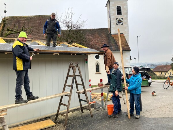 St. Agatha-Kirche bekommt Toilettenhäuschen Initiator Karl Etlinger und Pfarrer P. Hermann Sandberger würdigen die Arbeit aller Beteiligten.